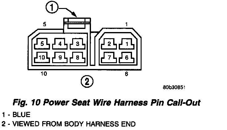 Fig. 10 Power Seat Wire Harness Pin Call-Out: