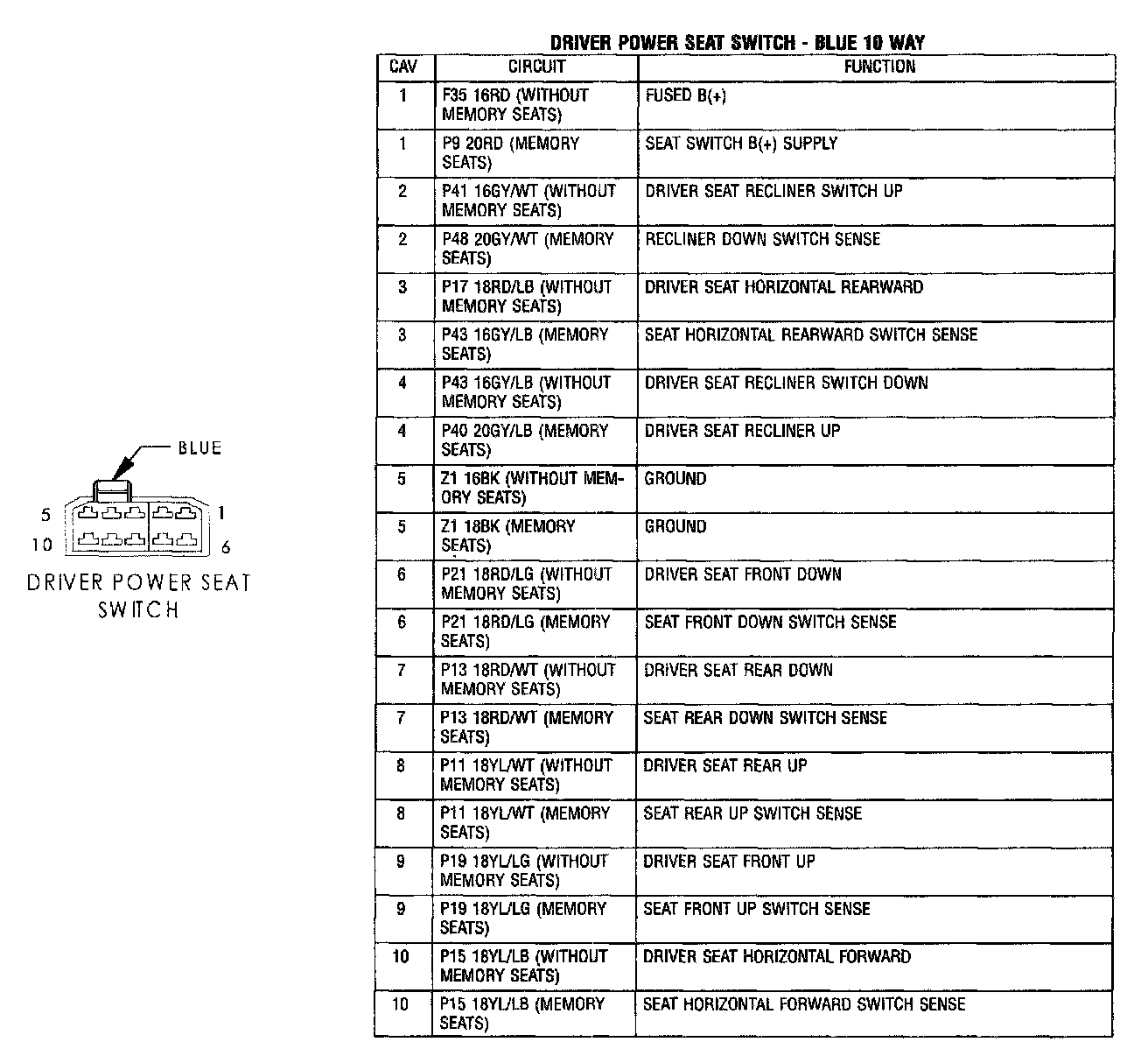 Driver Power Seat Switch: