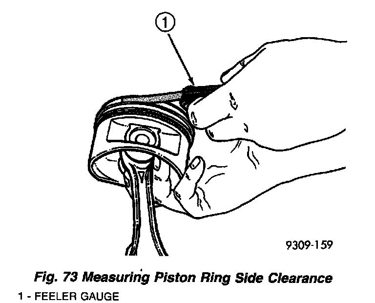 2. Check piston ring to groove clearance (Fig. 73).