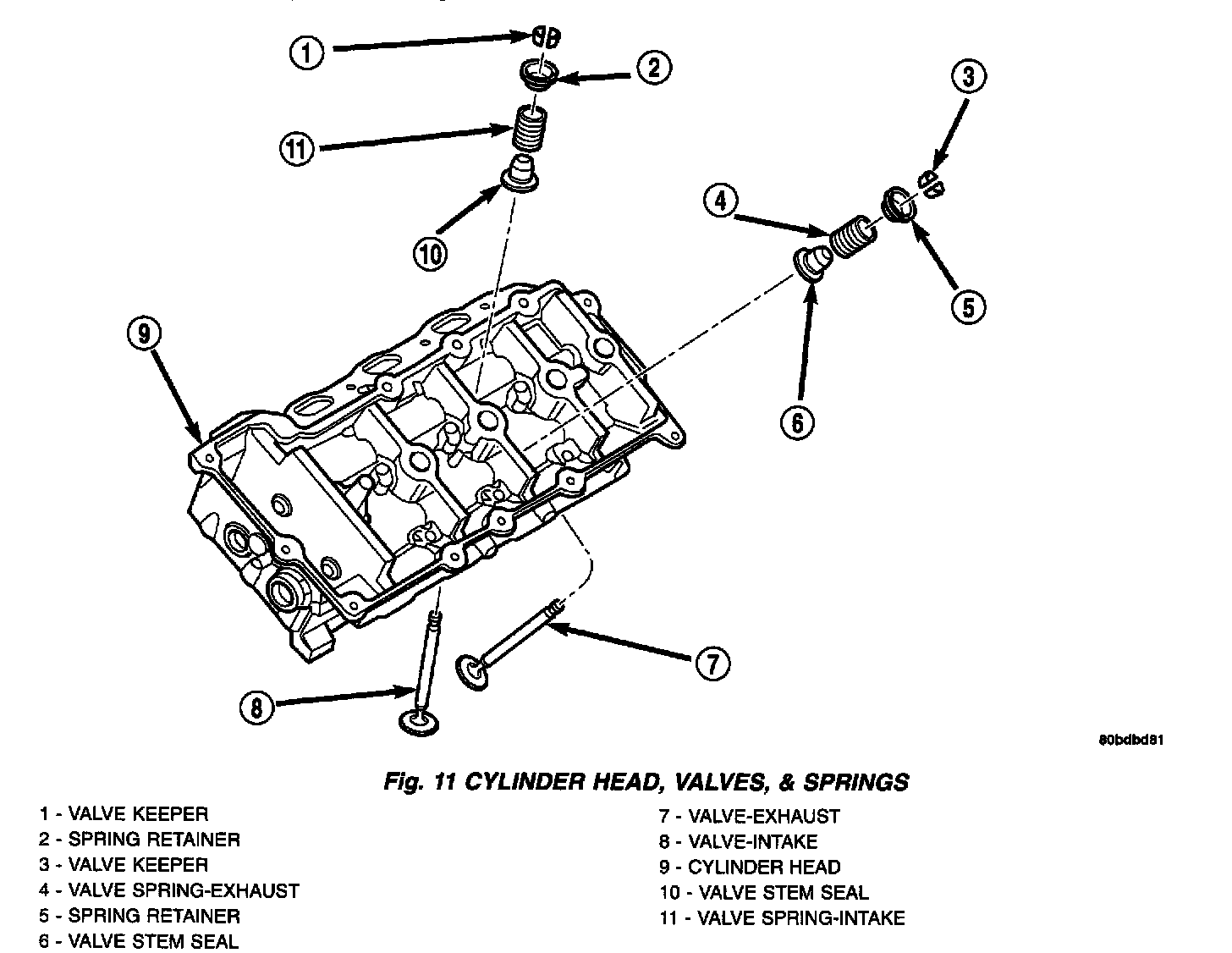 DESCRIPTIONThe valve springs are made from high strength, chrome-silicon steel (Fig. 11). The springs are common for intake and exhaust applications. The valve spring seat is integral with the valve stem seal, which incorporates a garter spring to maintain consistent lubrication control to the valve stem.