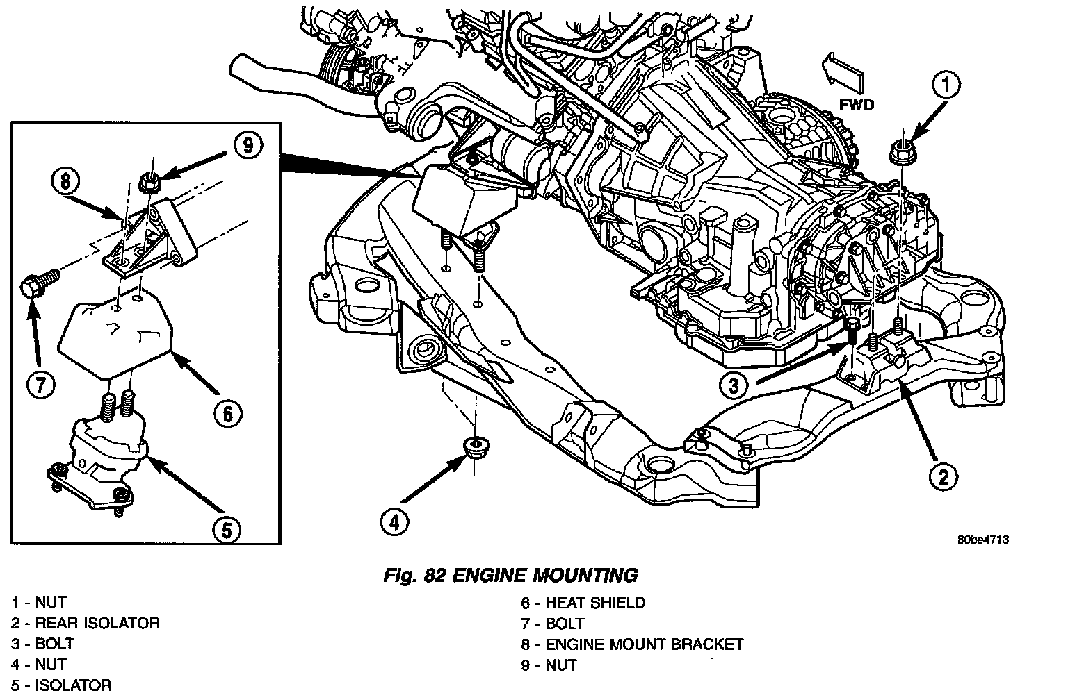4. Tighten the isolator to frame nuts to 61 Nm (45 ft. lbs.) (Fig. 82).