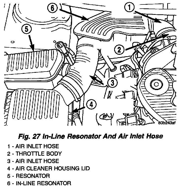 8. Remove the in-line resonator and inlet hose from the throttle body and air let hose coming from the lid of the air cleaner housing .