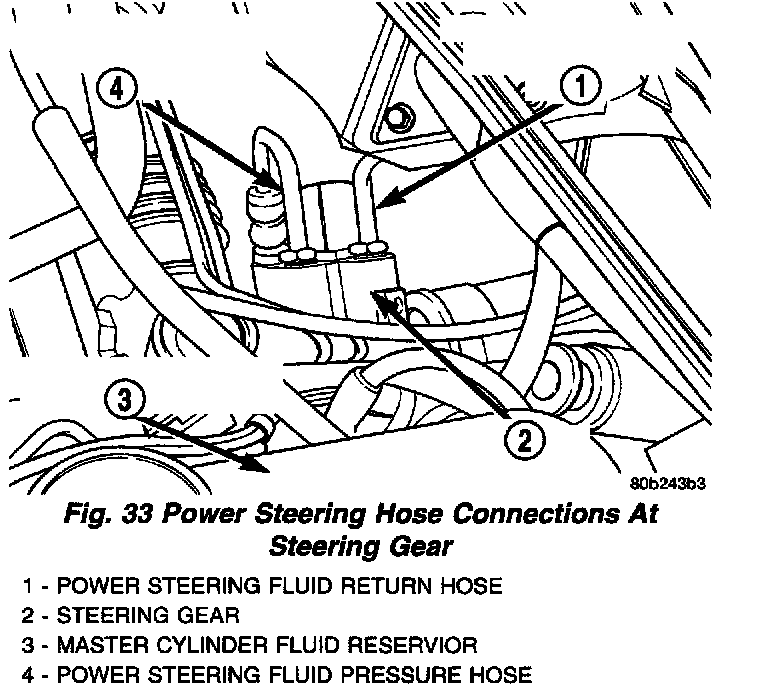 NOTE: The following step should be done to prevent excessive spilling of power steering fluid when the power steering fluid lines are removed from the steering gear.