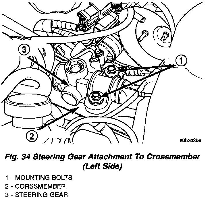 CAUTION: Tightening the steering gear to crossmember mounting bolts to the proper torque is very important.
