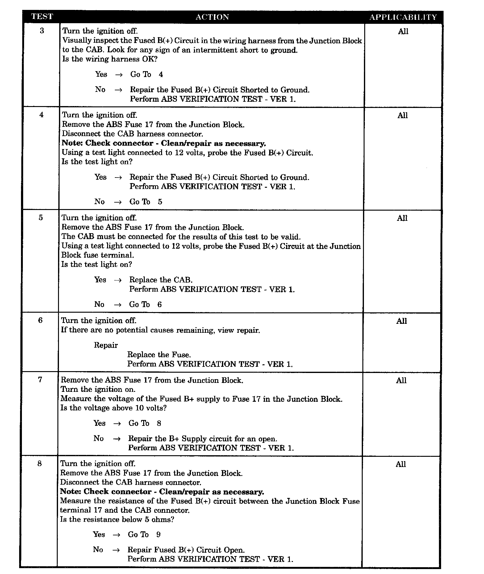 CAB DEFECTIVE - FUSED B(+) CIRCUIT OPEN