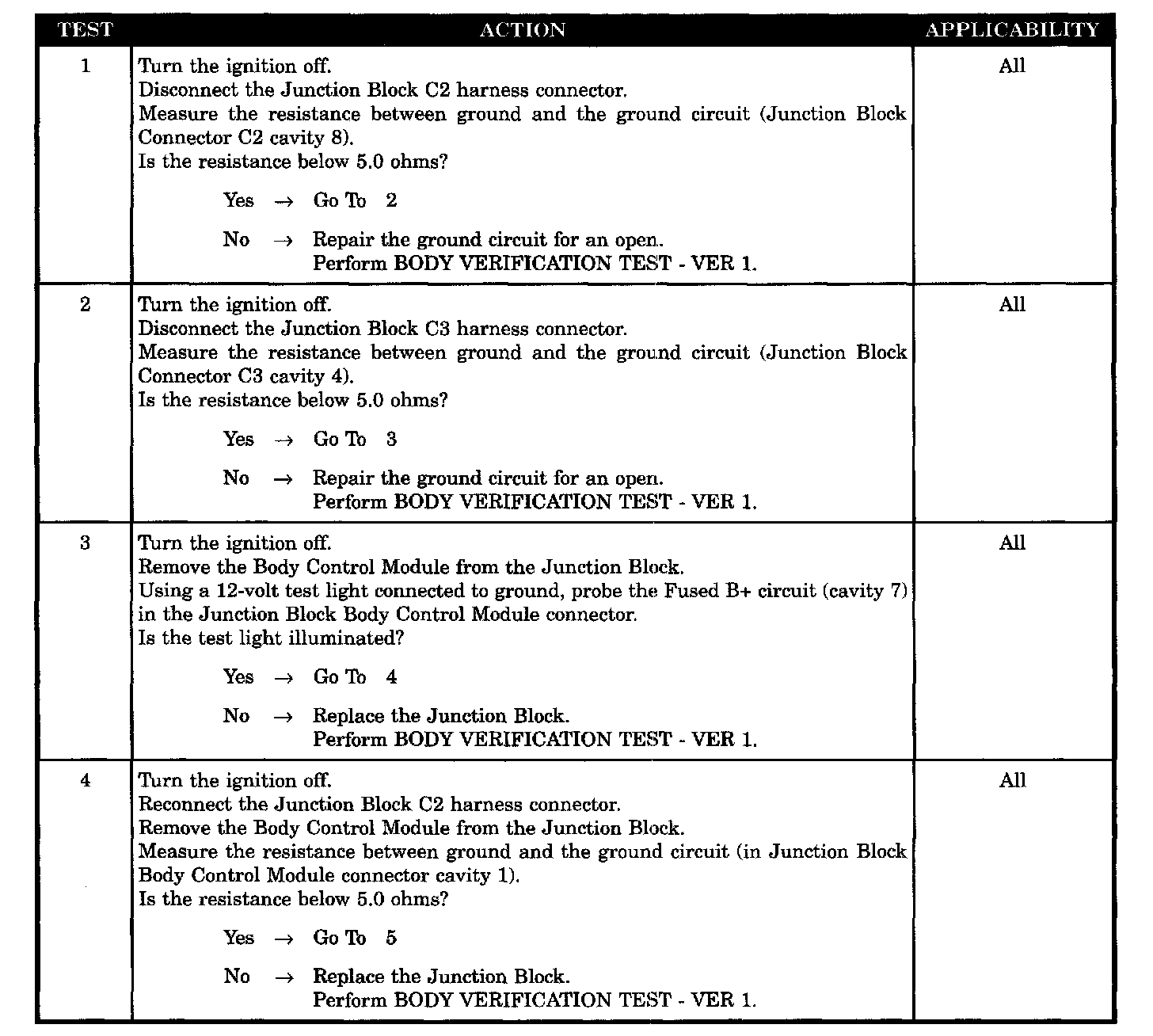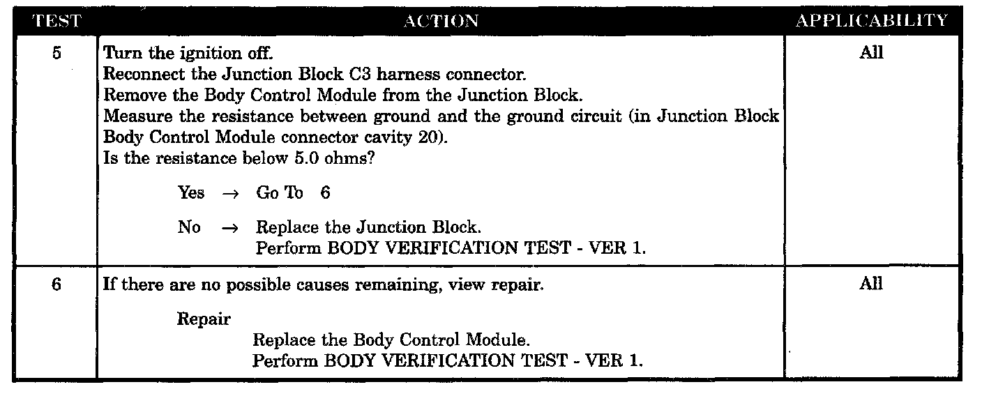 - Open ground circuit at the junction block body control module conn CAV 1
