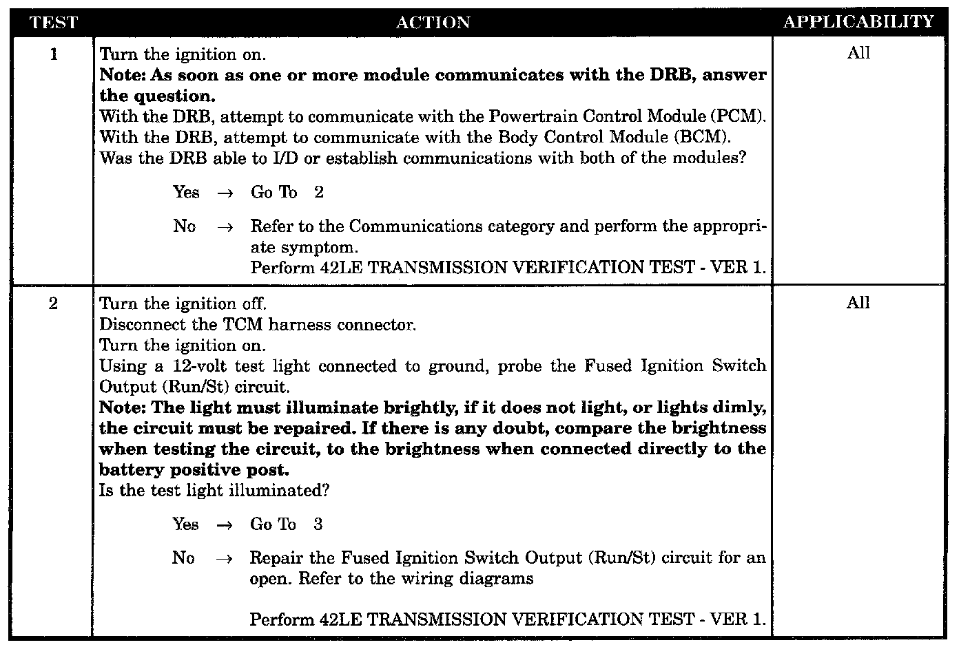 NO RESPONSE FROM TRANSMISSION CONTROL MODULE
