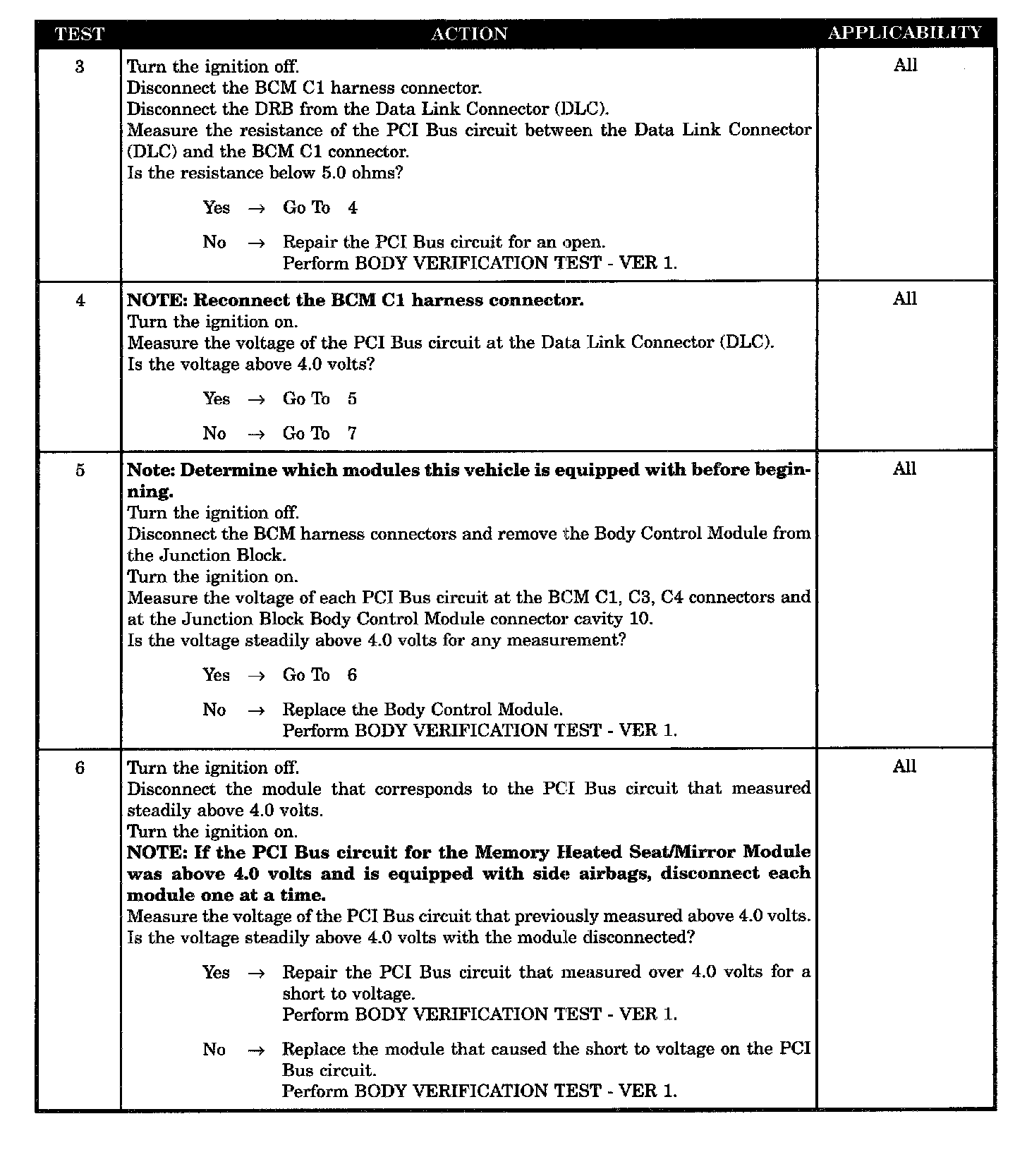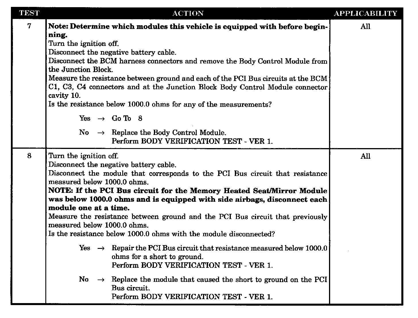 - Low resistance to ground on the PCI bus circuits at the BCM connectors