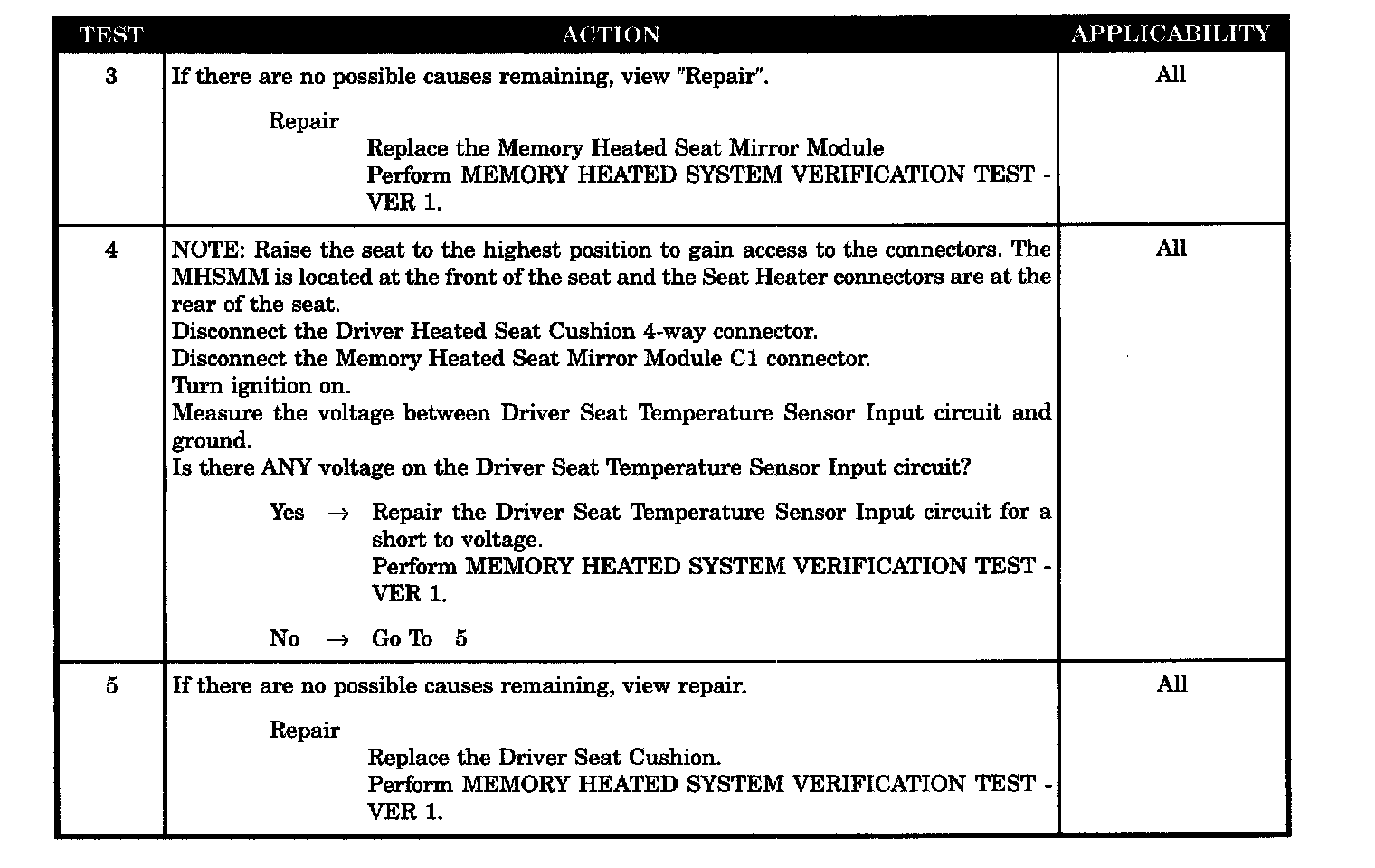 - Driver seat temperature 5 volt supply wire short to voltage