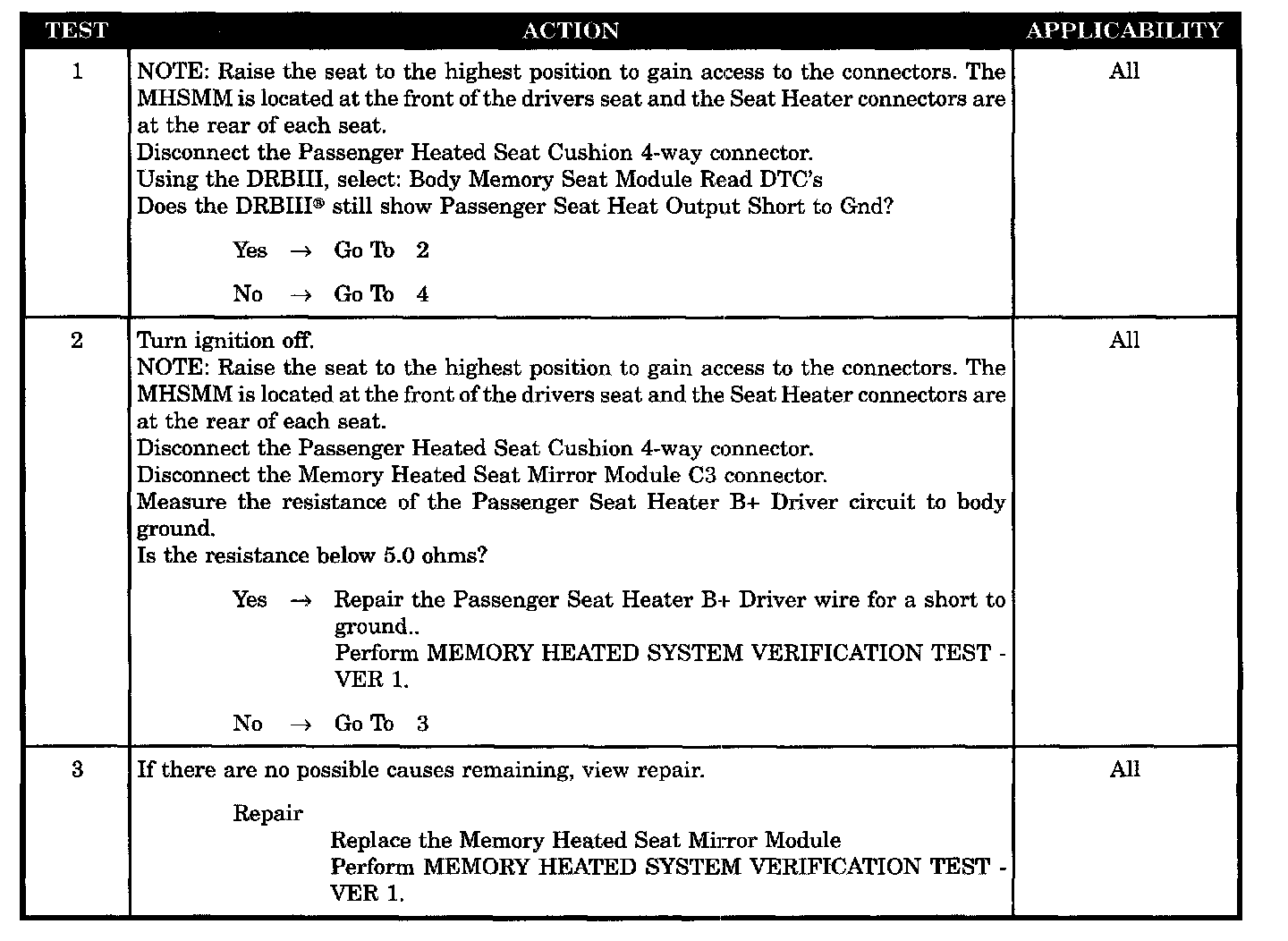 - Passenger seat heater B+ driver wire short to ground