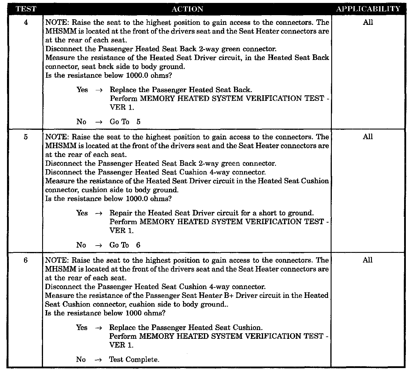 - Passenger heated seat cushion short to ground
