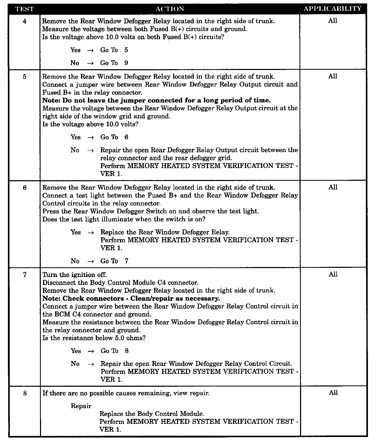 - Rear window defogger relay output short to ground