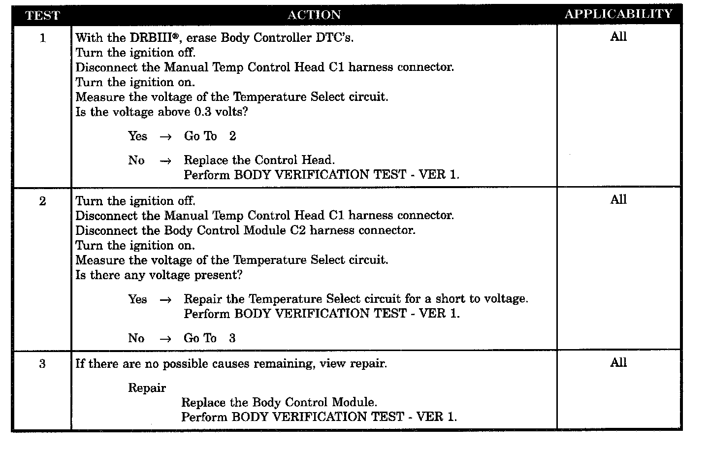 A/C Control Blend Door Input Shorted to Battery (MTC)