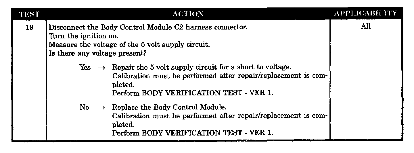 - Body control module - 5 volts supply high