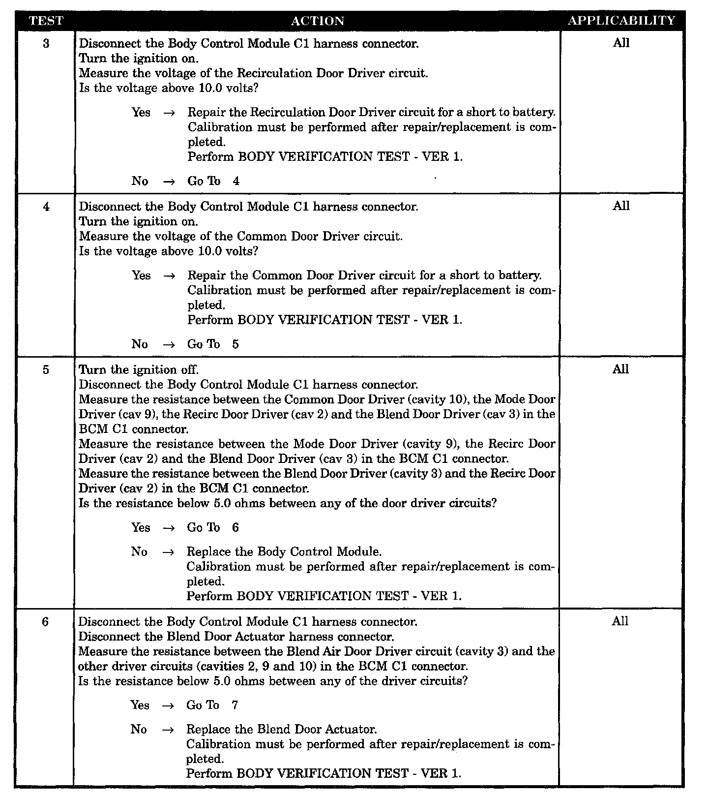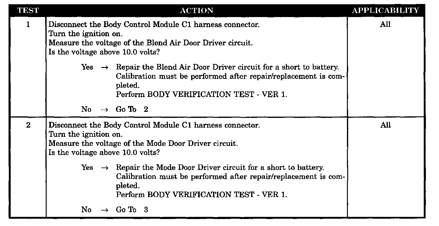 BLEND DOOR OUTPUT SHORTED TO BATTERY