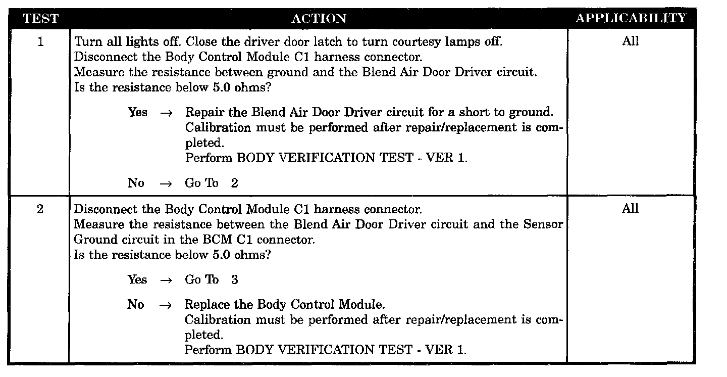 - Blend air door driver circuit short to ground