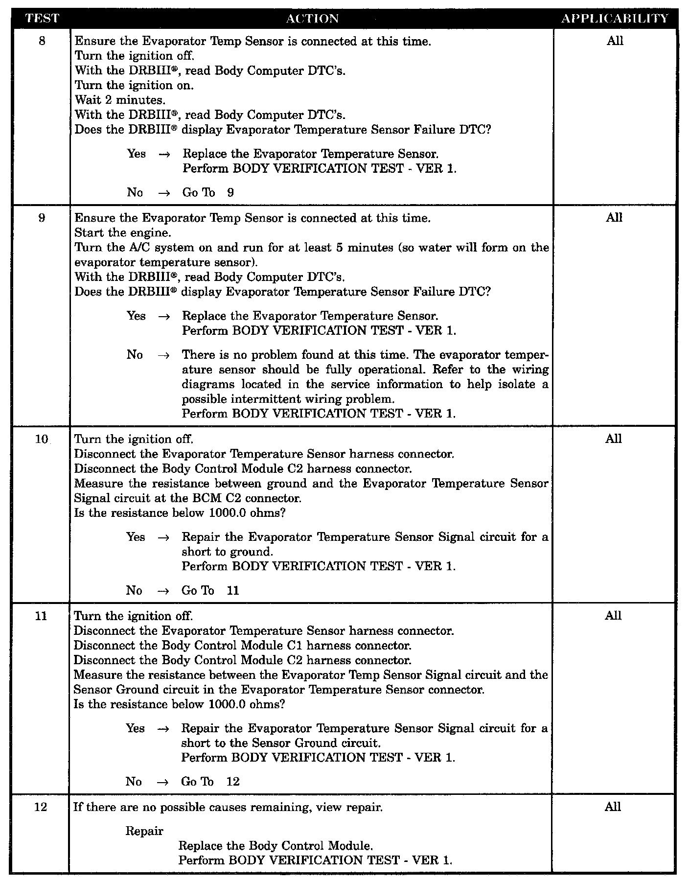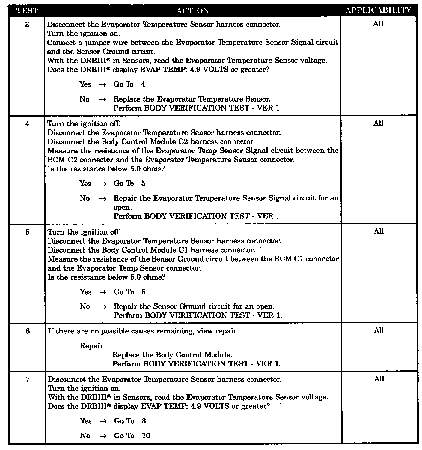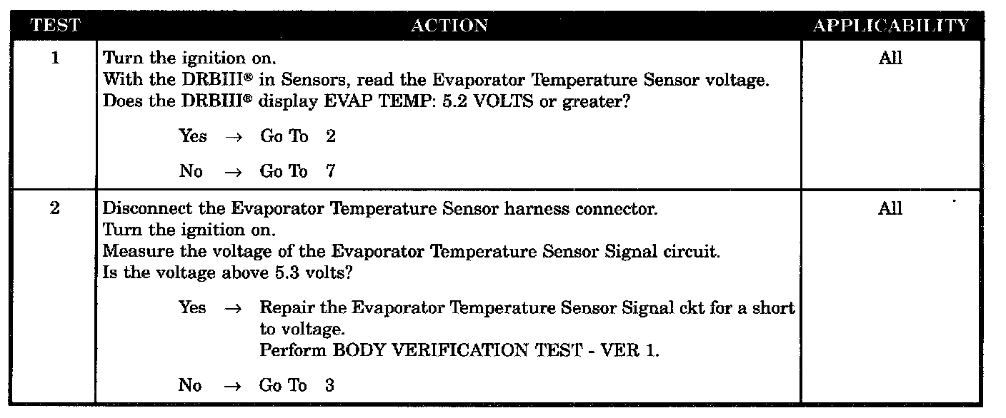 EVAPORATOR TEMPERATURE SENSOR FAILURE