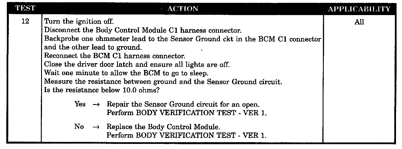 - Body control module - open sensor ground