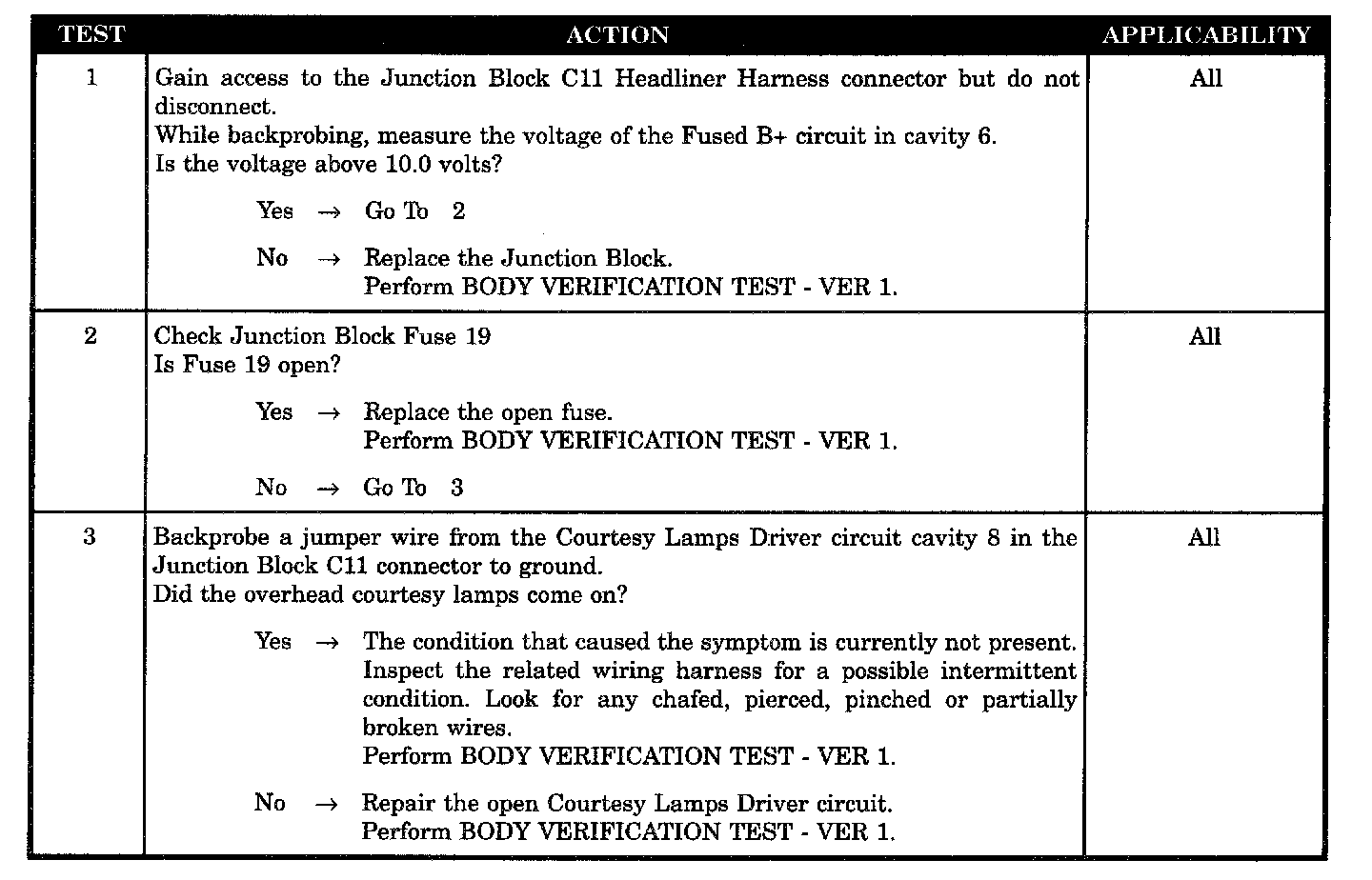 COURTESY LAMPS INOPERATIVE - OVERHEAD LAMPS
