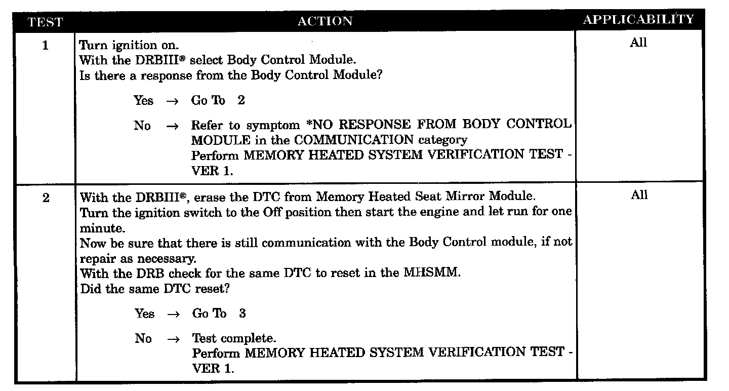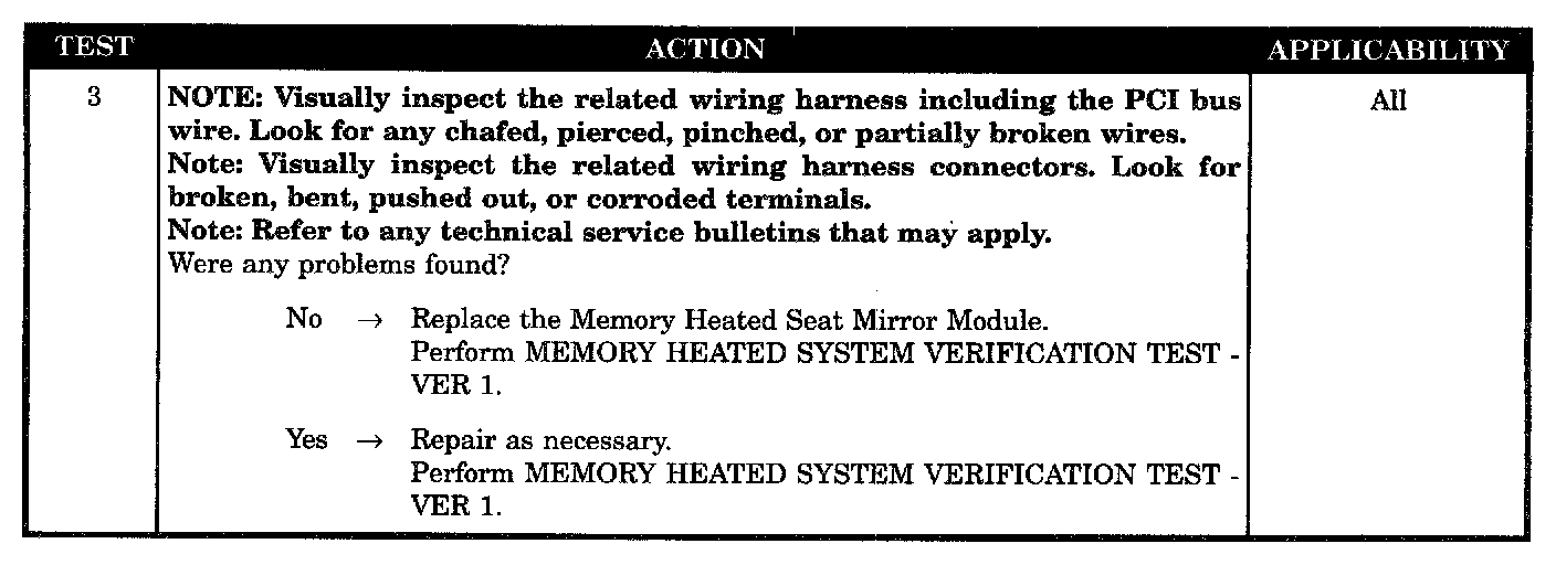 If the Memory Heated Seat Mirror Module does receive this Bus message from the BCM. This can be caused by a loss of voltage due to the IOD fuse being removed and cycling the ignition switch.