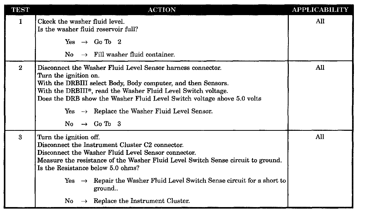 - Instrument cluster - Washer fluid switch sense shorted