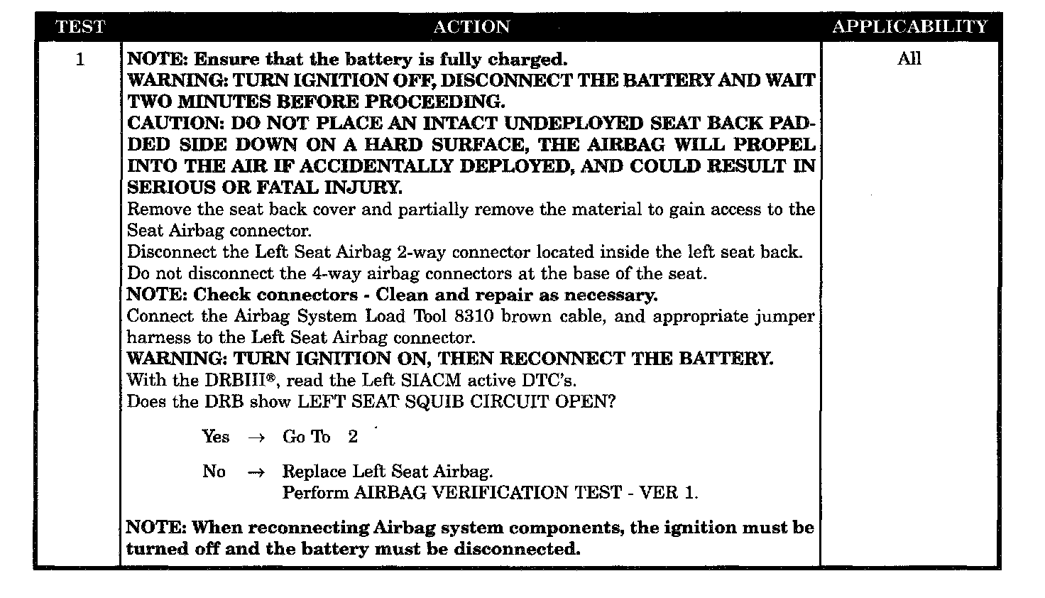 - Left seat squib line 1 circuit open