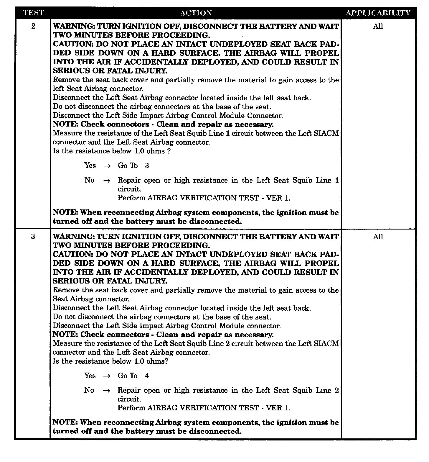 When the ignition is ON, the Left SIACM monitors the Left Seat Squib circuits for high resistance.