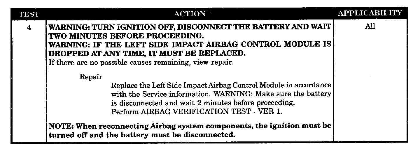 - LSIACM, Left seat squib circuit open