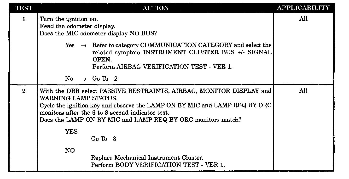 After the MIC bulb test is completed, the ORC compares the Lamp Request by ORC, ON or OFF,. and the Lamp ON by MIC, ON or OFF, PCI Bus messages. Each message is transmitted one time per second or when a change in the lamp state occur.