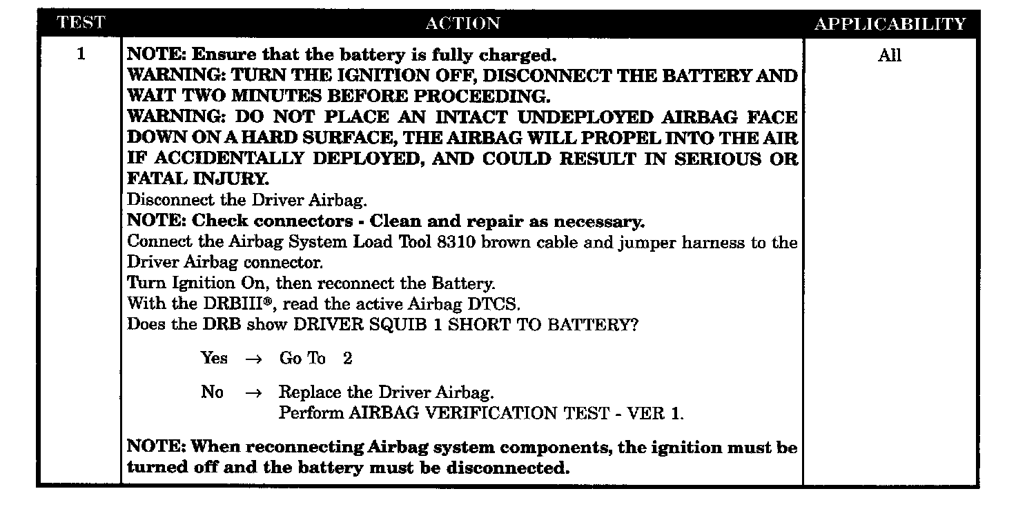 ORC, DRIVER SQUIB 1 SHORT TO BATTERY - ACTIVE