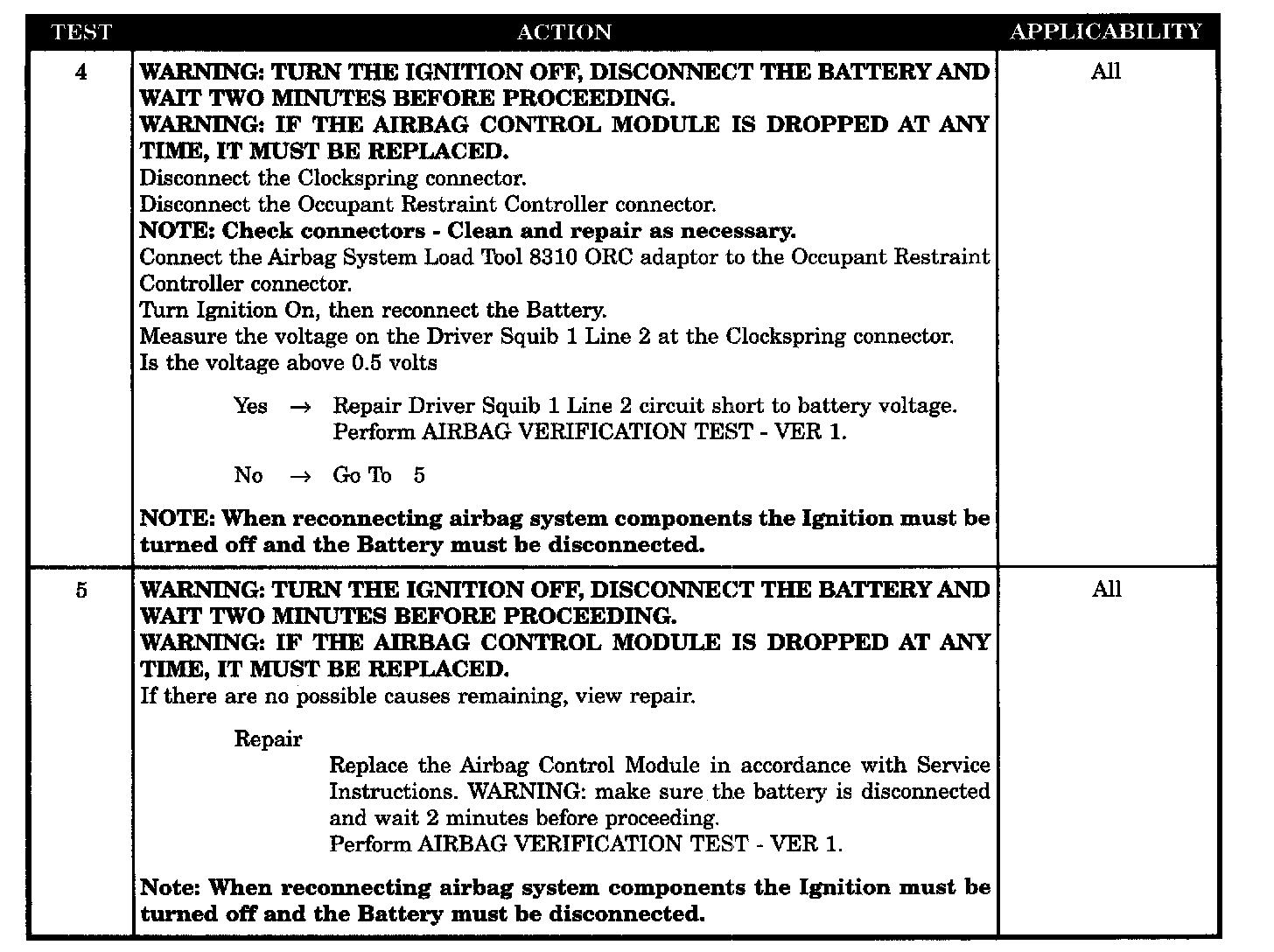 When the ignition is ON, the ORC monitors the voltage of the Driver Squib 1 circuits.