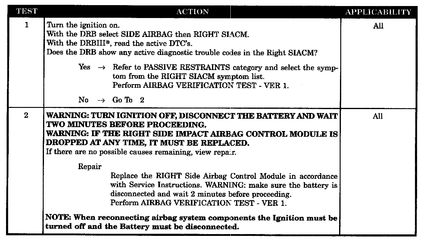 The Code Will set, if the ORC receives an "Lamp ON" status message from the Right SIACM. NOTE: This indicates that there is an active diagnostic trouble code in the Right SIACM.