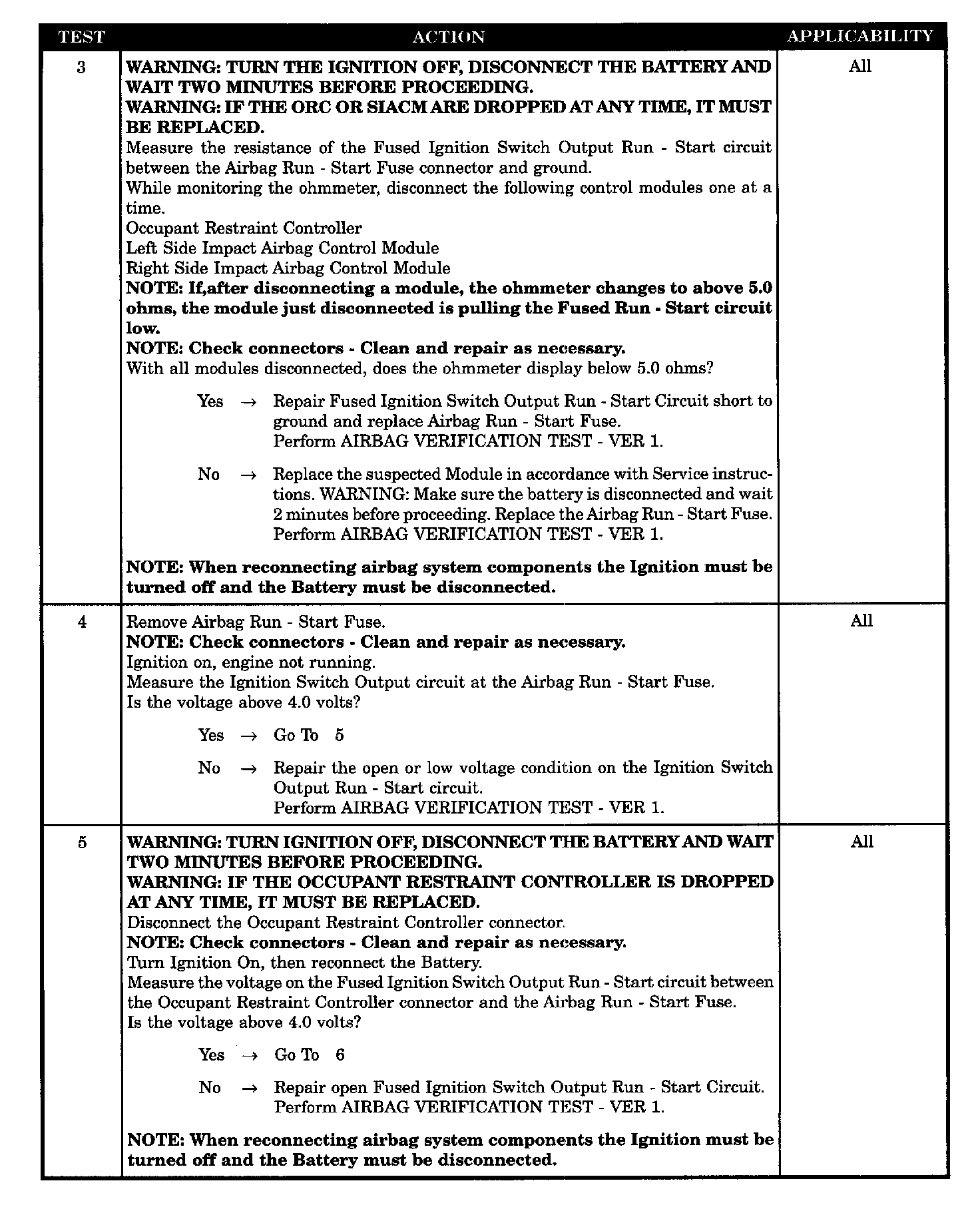 With the ignition in the Run-Start position the ORC monitors the Fused Ignition Switch Output Run-Start circuit for proper system voltage.