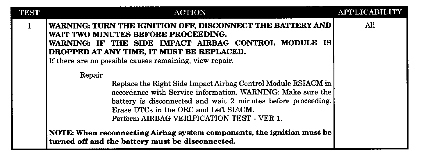 - Right side impact airbag control module, active/stored code