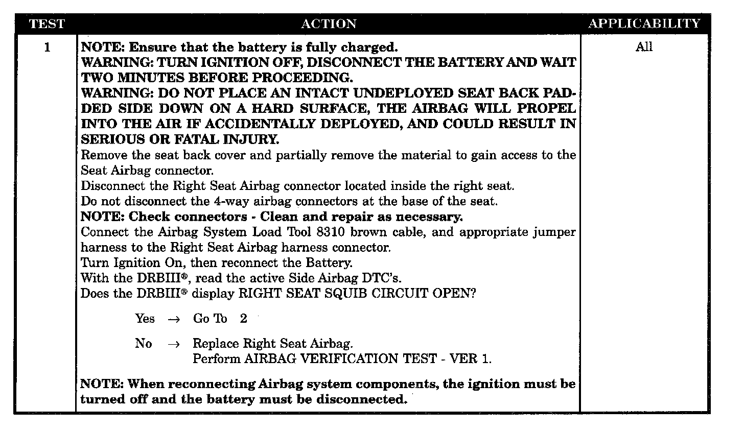 - Right seat squib line 1 circuit open