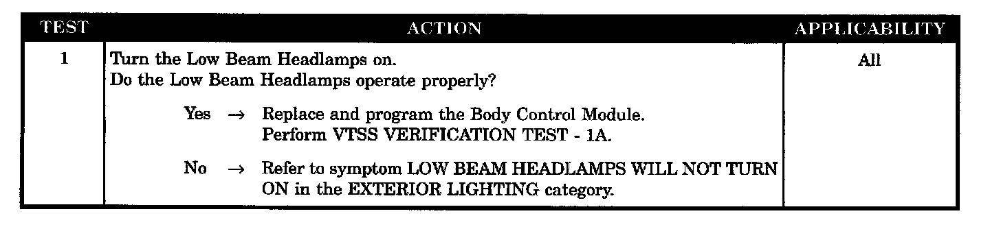Verify low beam operation