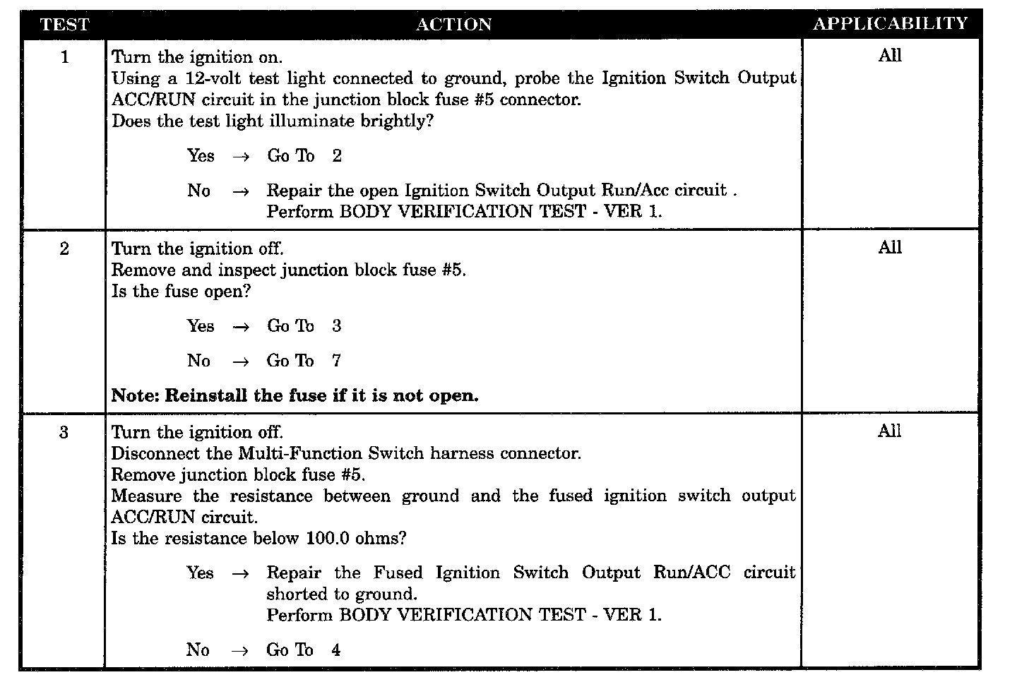 - Fused ignition switch output run/acc short to ground