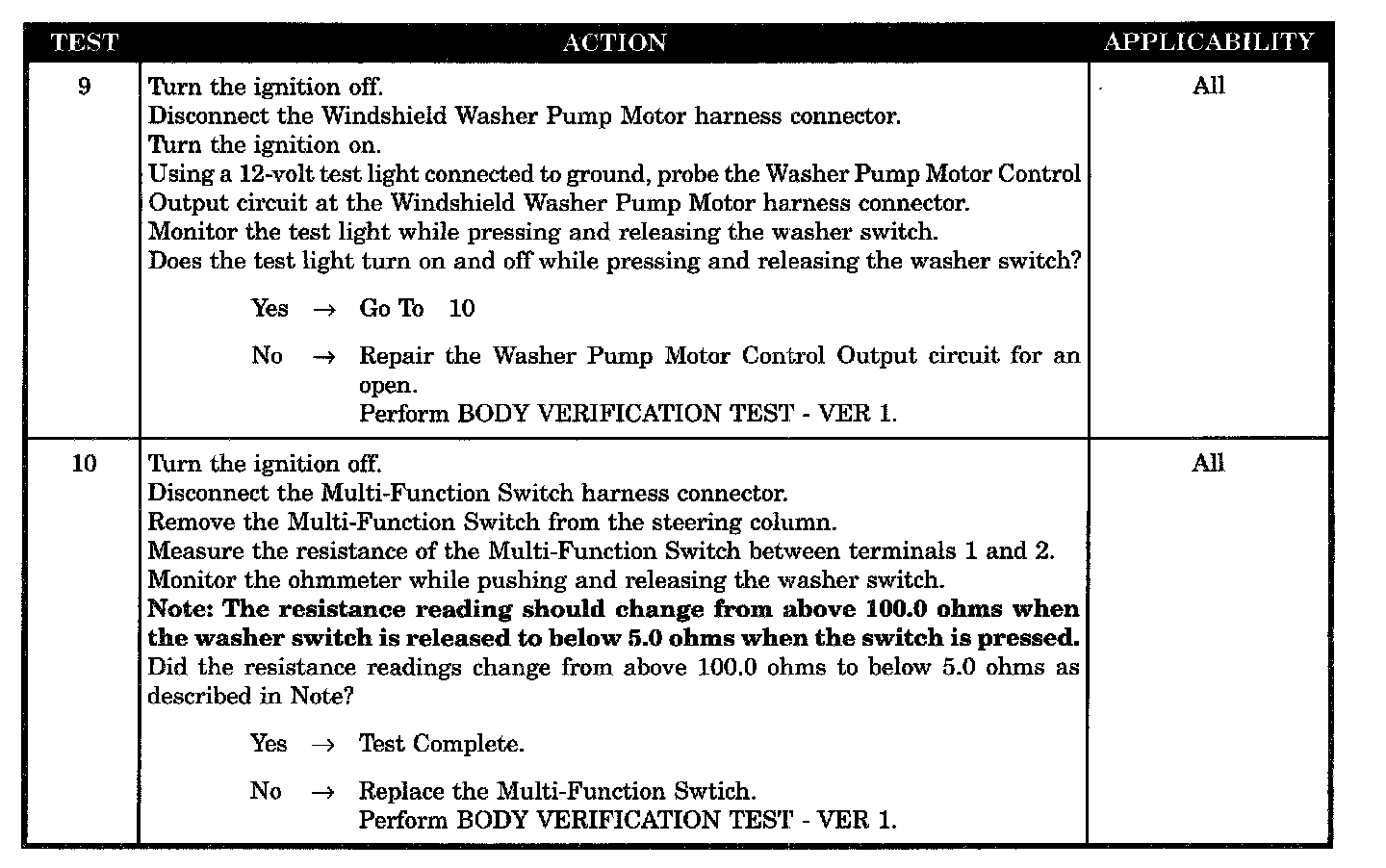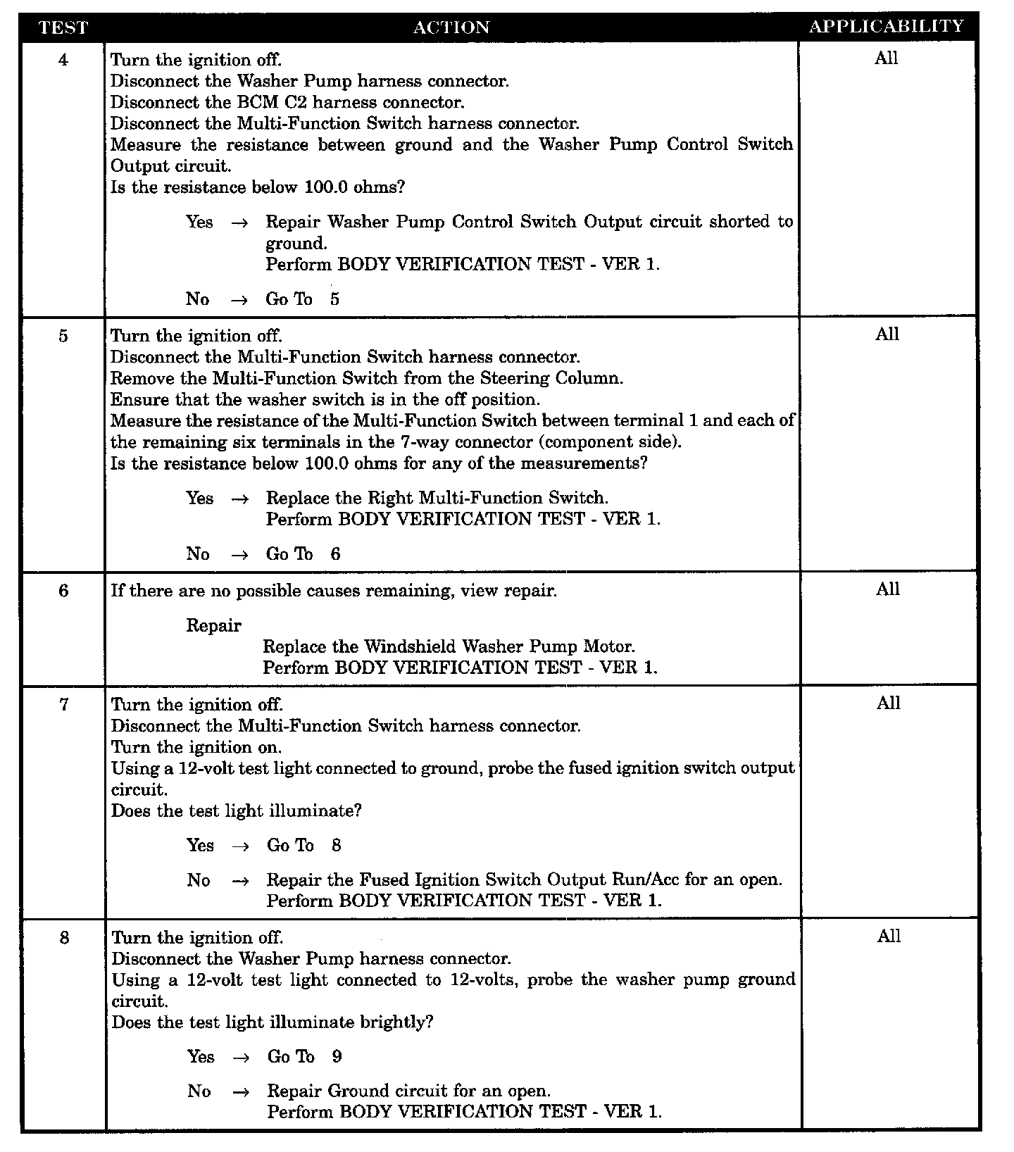 - Washer pump motor control circuit short to ground