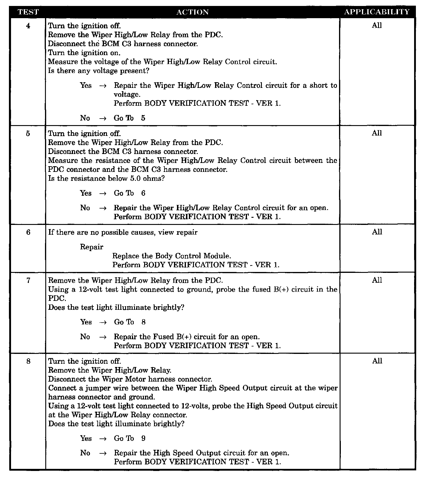 - Wiper high/low relay control CKT short to voltage