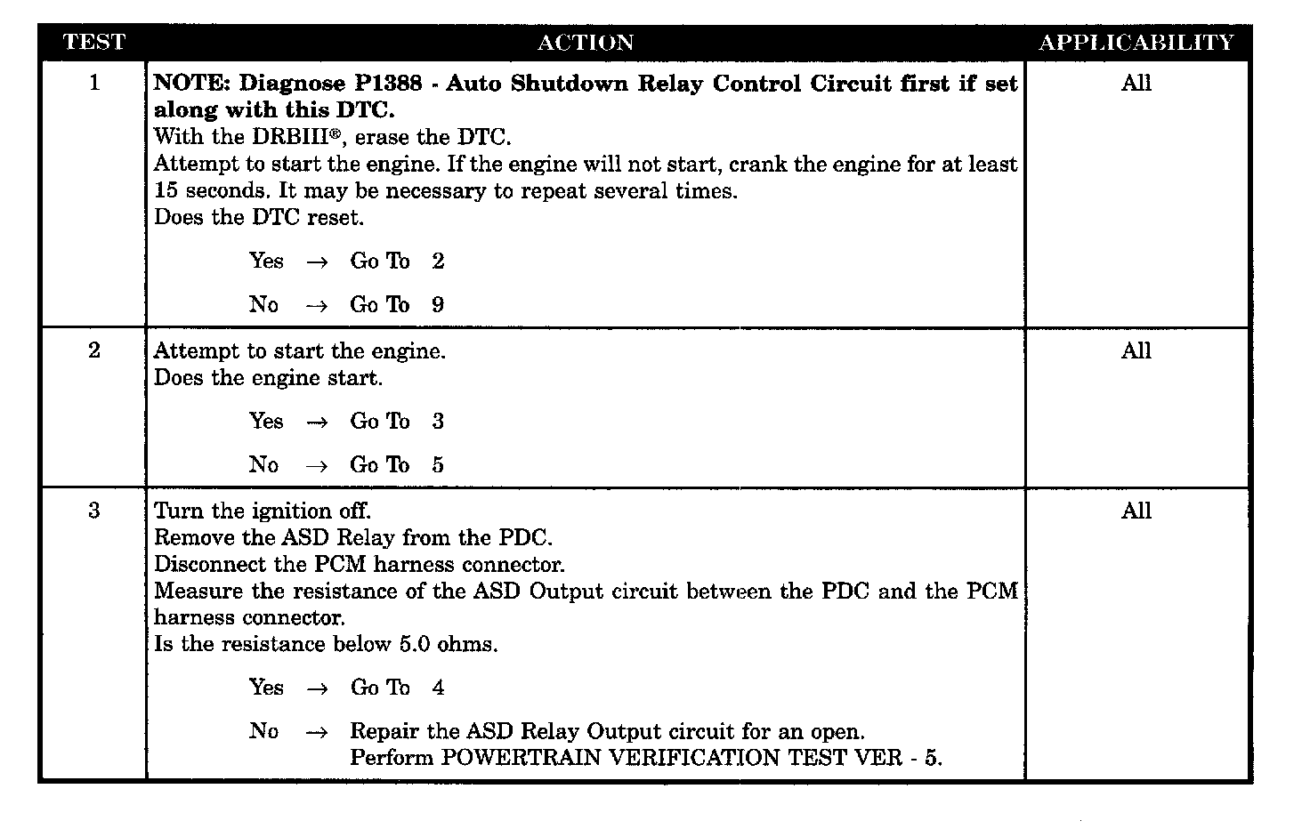P1389-NO ASD RELAY OUTPUT VOLTAGE AT PCM