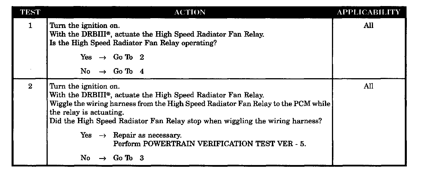 - High speed radiator fan relay control circuit short to ground