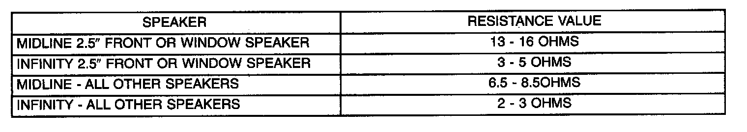 - If resistance is OK, (Refer to AUDIO - DIAGNOSIS AND TESTING). If radio checks OK, replace amplifier.