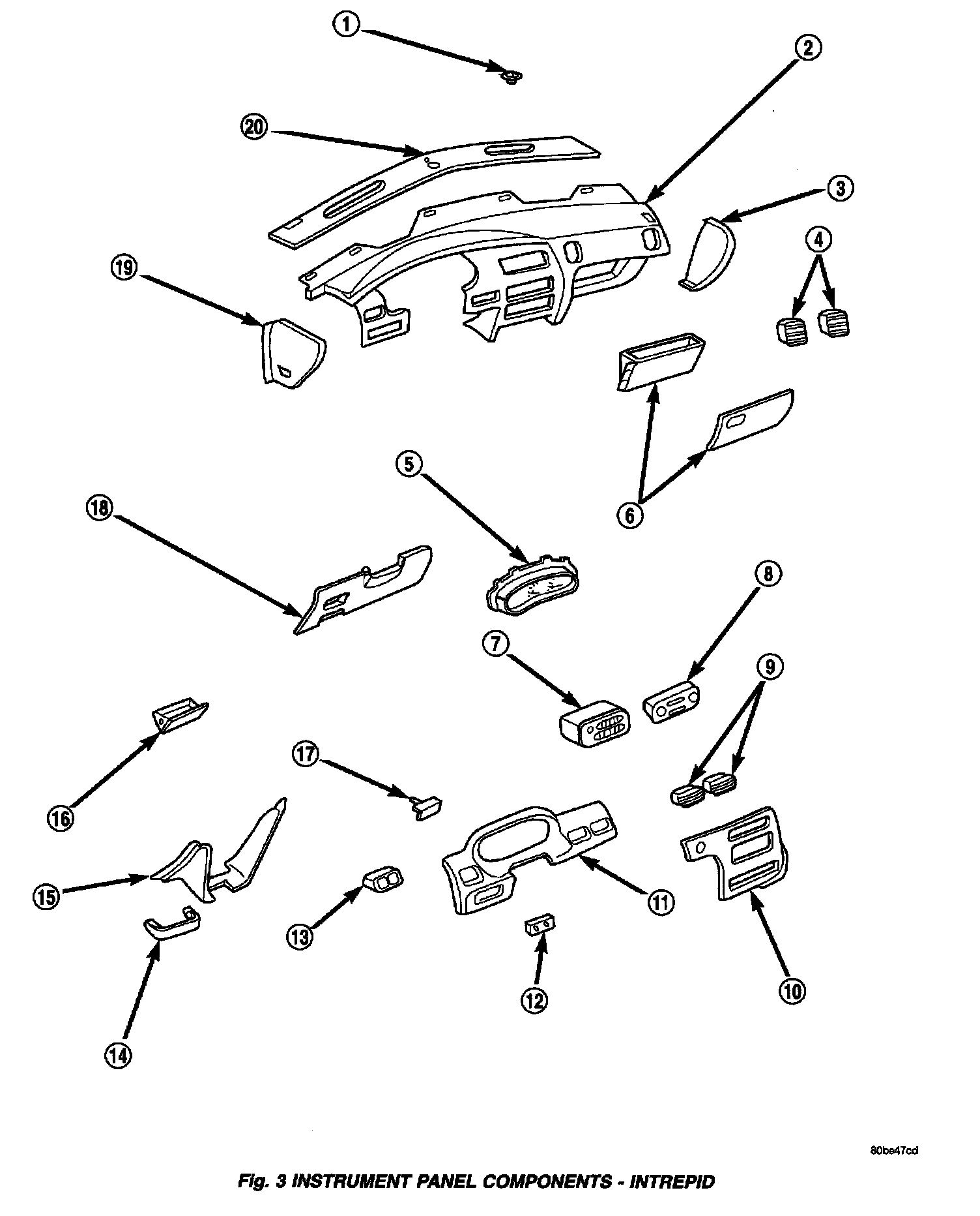 Fig. 3 Instrument Panel Components - Intrepid:
