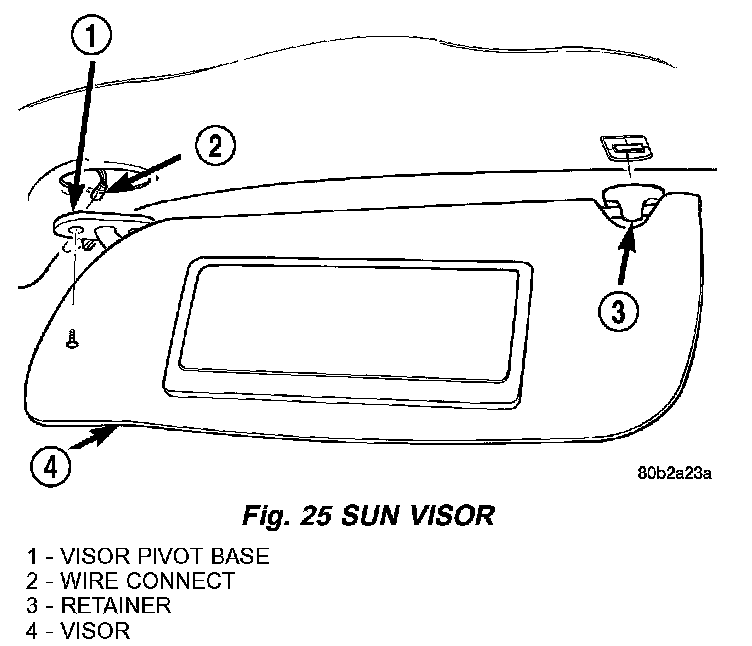 1. Remove screw attaching inboard visor retainer to over head. (Fig. 25).