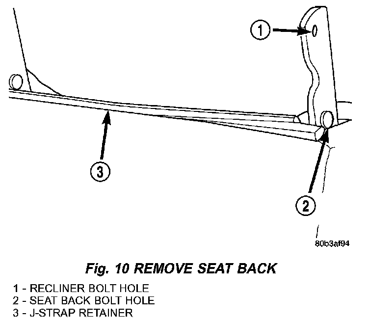 3. Remove bolts attaching recliner to seat back cushion frame (Fig. 9).