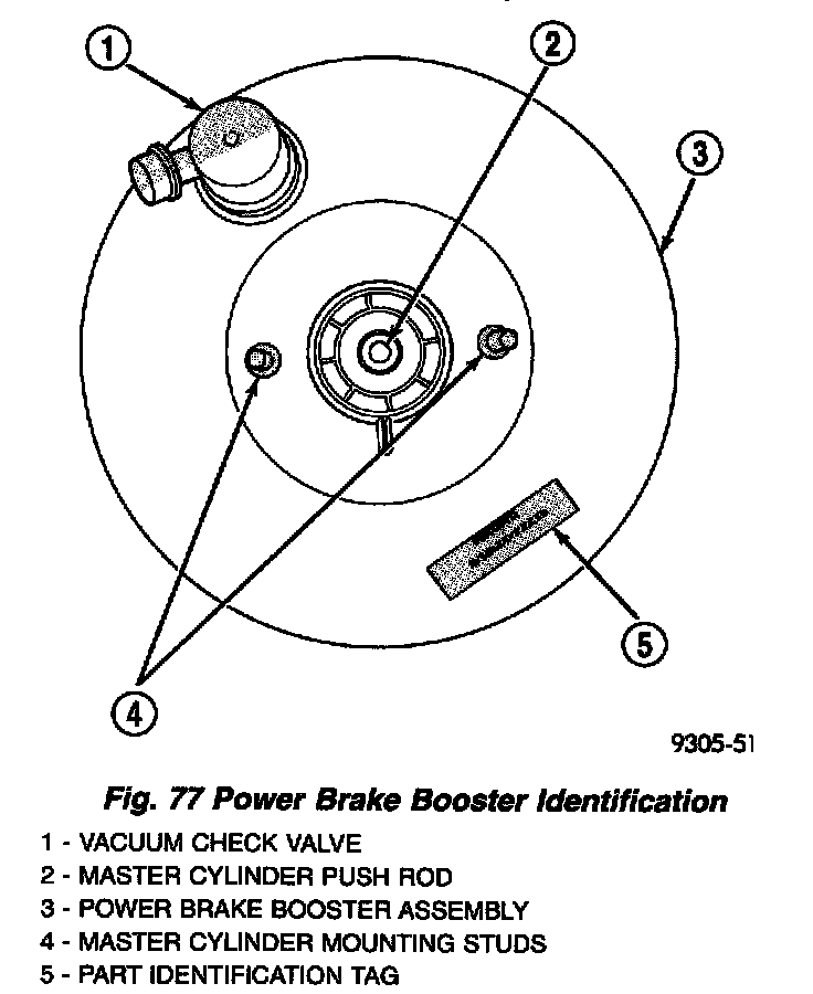 The power brake booster can be identified by the tag attached to the body of the booster assembly. This tag contains the following information: