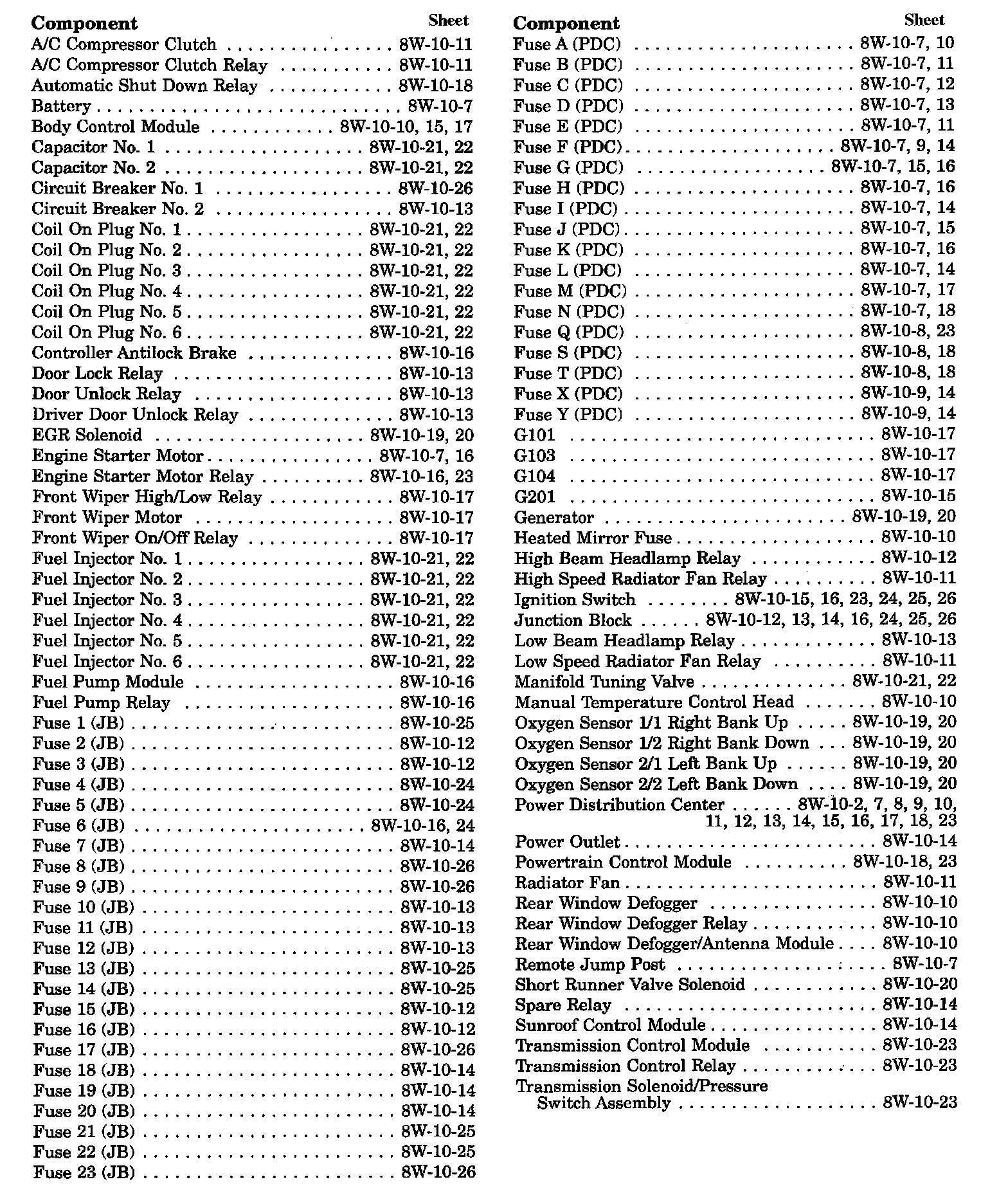 Sheet 8W-10-1 Group Index