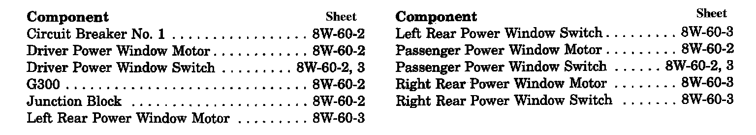 Power Windows Component Index: