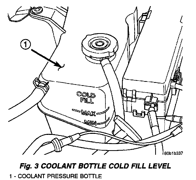 STANDARD PROCEDURES - COOLANT LEVEL CHECKNOTE: Do not remove coolant bottle pressure cap for routine coolant level inspections.