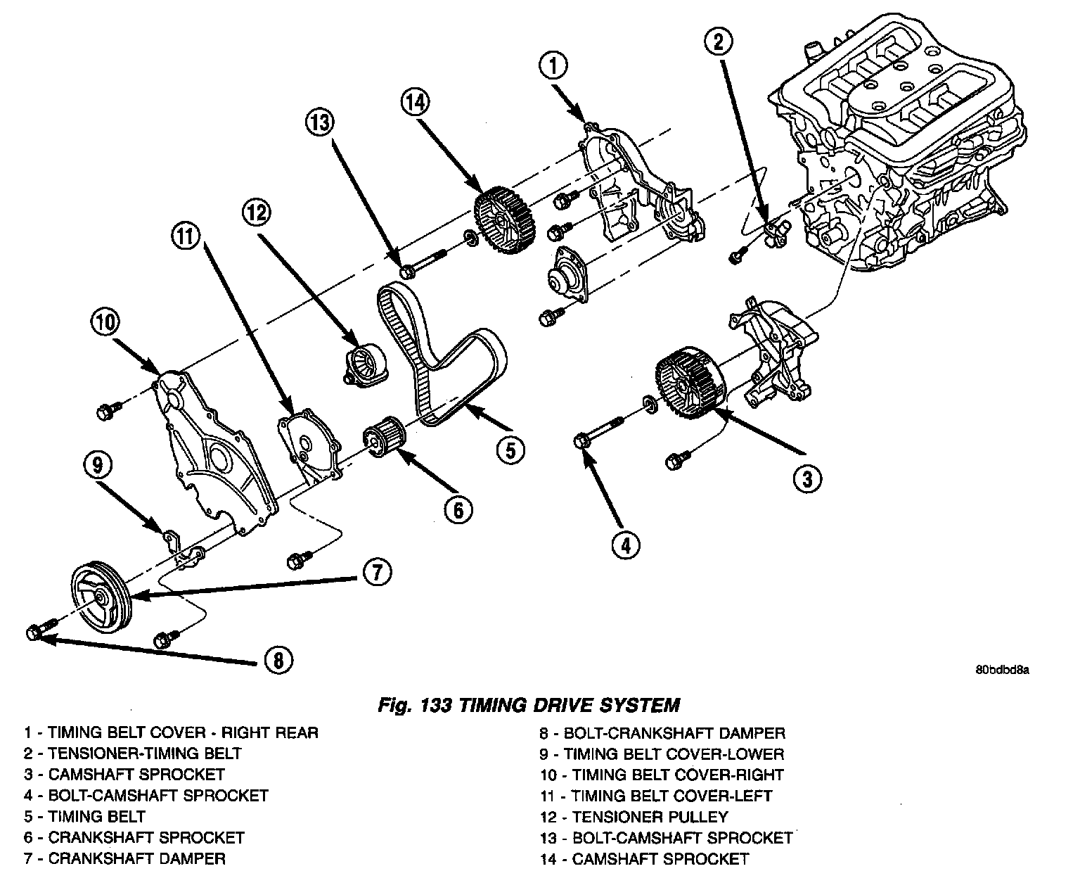 DESCRIPTIONThe timing drive system (Fig. 133) has been designed to provide quiet performance and reliability to support a NON free-wheeling engine.